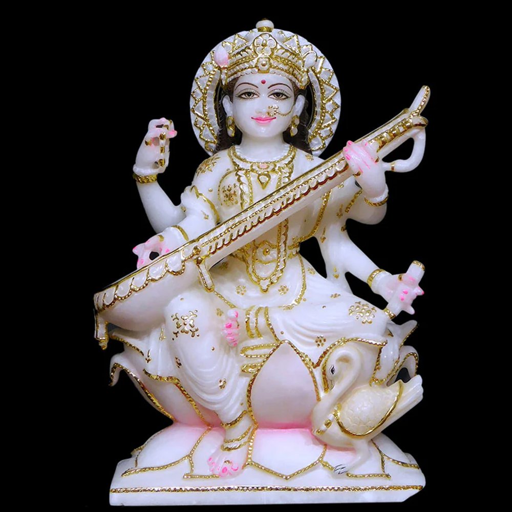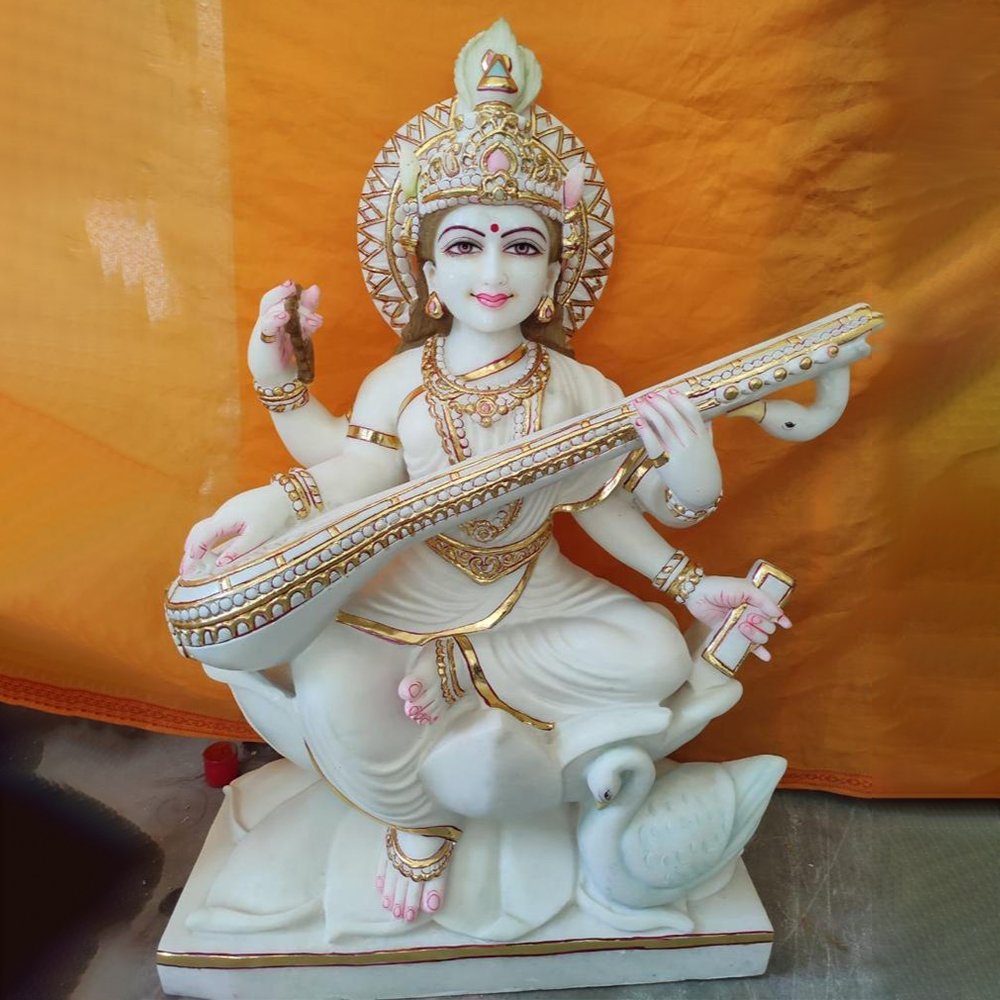 What type of marble is used for Saraswati Mata statues?